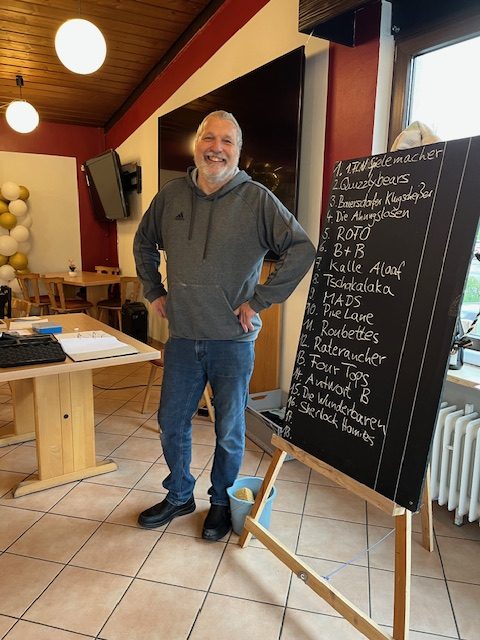 Am 14.04.2026 fand der erste Quiz Abend beim SV Tennenlohe mit Quizmaster Edo statt. Rund 60 Teilnehmer stellten sich den Fragen. In 4-Teams ging es zehn Runden um Allgemeinwissen und teilweise auch um den SV Tennenlohe. Das Rennen machte das Team “Kalle Alaaf“ die sich über einen Gutschein für einen Escape Room in Erlangen freuen durften. Der nächste Abend ist für Oktober geplant.